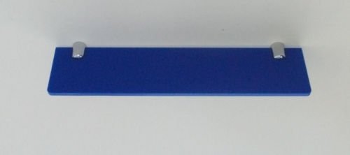 PRODUCT DESCRIPTIONS:Manufactured in the UK in 5mm Blue Acrylic Available in various colours Chrome Polished Fixings Wall Mountable Product Sizes: Width 300mm, Depth 75mm The product is protected by a green/white film to prevent it getting marked during transit, which needs to be removed to reveal the perspex/acrylic. For care instructions: Easily cleaned using warm soapy water.