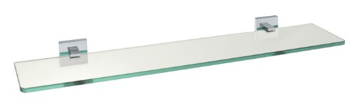 PRODUCT DESCRIPTIONS:The bracket of the Power-Loc glass shelf from the San Remo series is made of high quality, chrome plated and entirely rustproof brass. The elegant, clear glass shelf is ideally suitable for mounting between the washbasin and mirror. It offers ample space for all bathroom utensils and creates additional storage space for wash lotion, soap dispenser, decorative items, etc. This makes the practical wall shelf a useful aid in the bathroom or guest toilet. The manufacturer offers a 10-year guarantee. The Power-Loc adhesive system offers decorative bathroom accessories and shelves, which are simply mounted on the wall - without screwing, drilling, or dowelling. The TÜV type-tested Power-Loc series is characterised by an extremely strong hold on all suitable surfaces e.g. tiles, natural stone, concrete, wood, and many plastics where professional suction systems fail. Due to the specially developed adhesive from high-tech research, each of the mounting hooks is permanently capable of bearing heavy loads. The mounting hooks can be removed again at any time without leaving residues and can be flexibly repositioned. The adhesive system has already proved itself a million times over in industrial and professional craft applications.